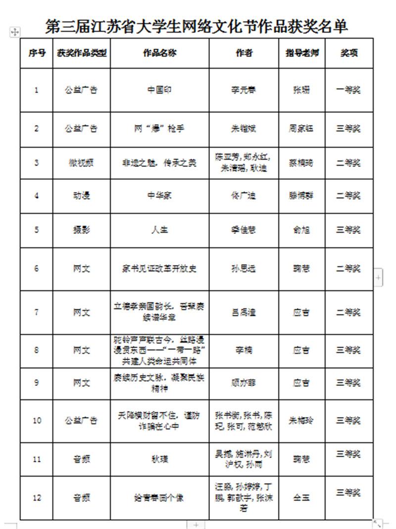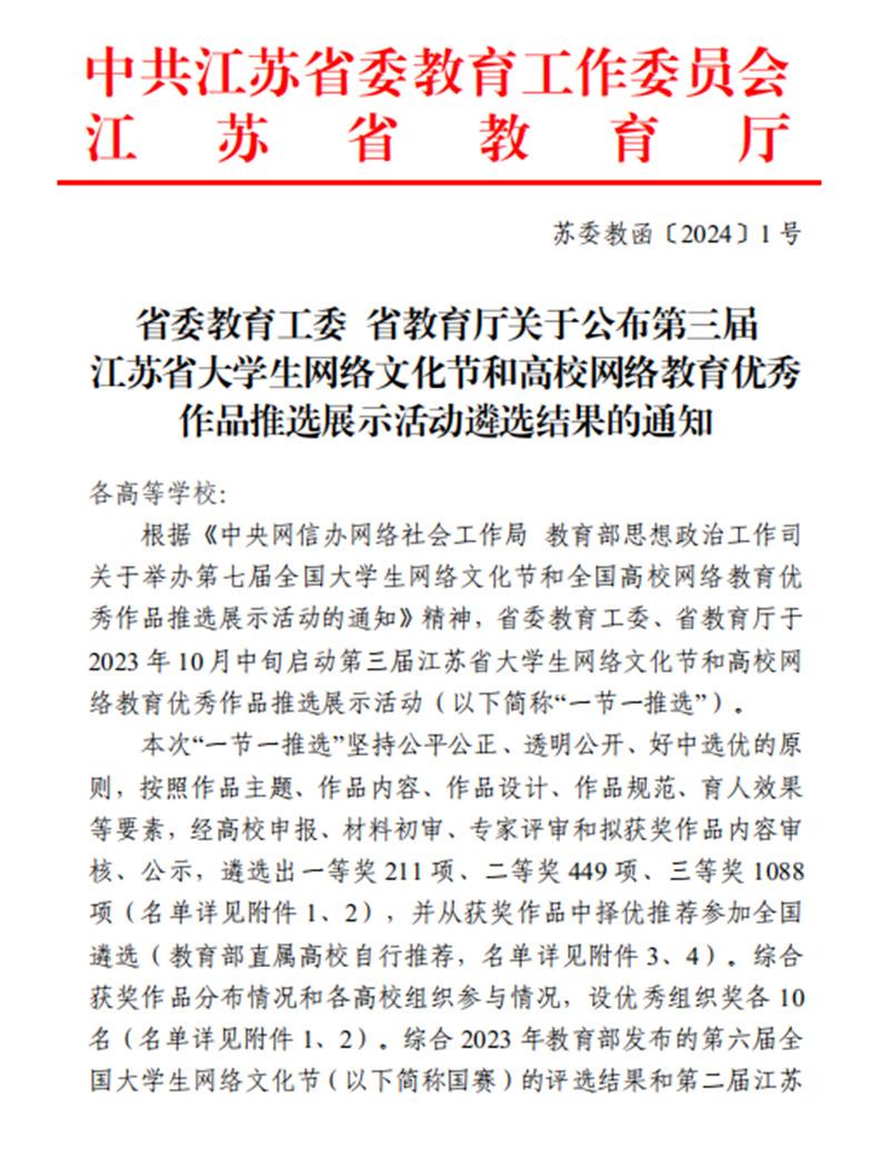 常州紡織職業技術學院14件作品在(zài)第(dì)三(sān)屆(jiè)江蘇省大學生網(wǎng)絡文化節(jiē)和高校網絡(luò)教育優秀作品推選(xuǎn)活動中獲獎