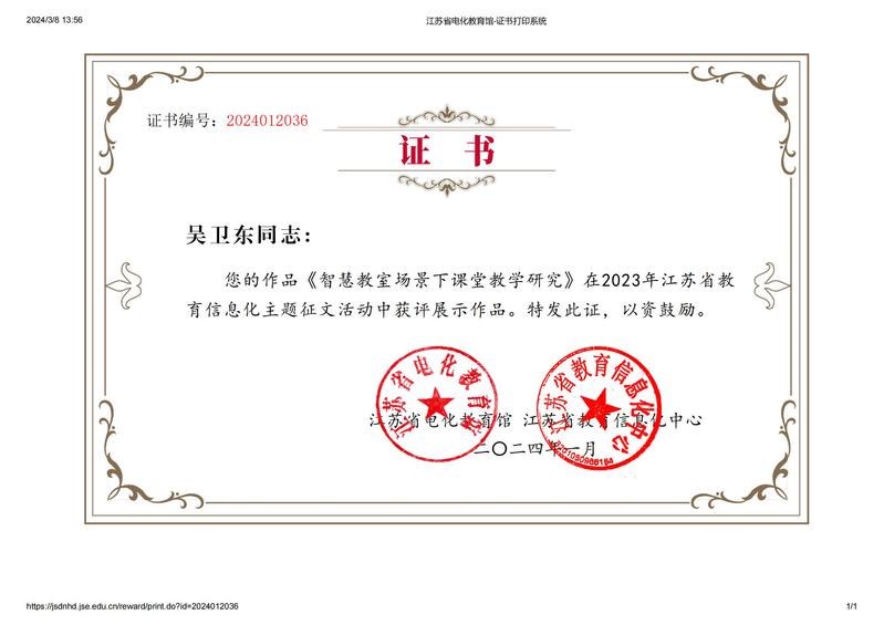 常州(zhōu)紡織服裝職業技術學院教師參加省教育信息化主題征文(wén)活動獲獎