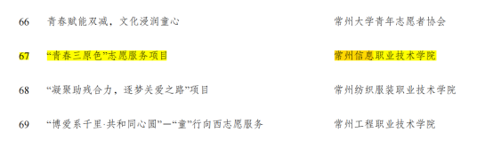 為認真落實習近(jìn)平總書記對深入開展學雷鋒活動的重要指示精神,進一步推進江蘇省青年誌願服務(wù)事業,共青團江蘇(sū)省委、江蘇省誌願者協會啟動了全省青年誌願者行(háng)動評選表彰活動。經過廣泛動(dòng)員、推薦(jiàn)申報、集中評審、網絡公示等環節,常州信息職業技術學院數字經濟學院袁梓皓榮獲“2023年度江蘇省優秀誌願者”稱號(hào);電子(zǐ)工程(chéng)學院“青春(chūn)三原色”誌願服務項目榮獲“2023年度優秀誌願服務項目”;數(shù)字經濟學院青年誌願者協會榮(róng)獲“2023年度(dù)青(qīng)年誌願者行動組織獎”。