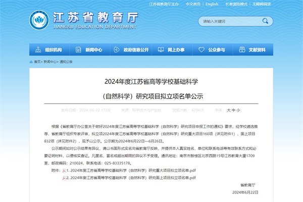 近日,江蘇省教育廳發布了《省教育廳關於公布(bù) 2024 年度省高校基礎科學(自(zì)然科學)研究項目的通(tōng)知(zhī)》,今年省高校自然麵上項目全(quán)省(shěng)高校共立項832項,其(qí)中全省高職院共立項128項,常州(zhōu)紡織服裝職業技術學院3位年輕博士的項目獲(huò)得立項,在立項(xiàng)項目數量和級別上均取得了較好的成績。