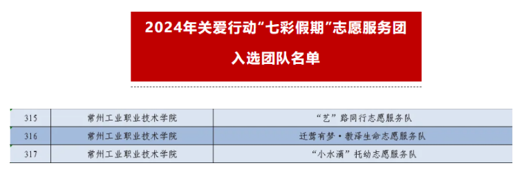 7月4日,從校團委傳來喜訊,在近日由團中央青年誌願者行動指導中(zhōng)心組織開展的(de)全國各(gè)類(lèi)大學生(shēng)誌願服務示範宣講團遴選活動中,常州工業職(zhí)業技術學院多支宣(xuān)講(jiǎng)團入選。