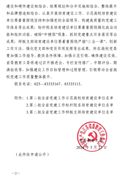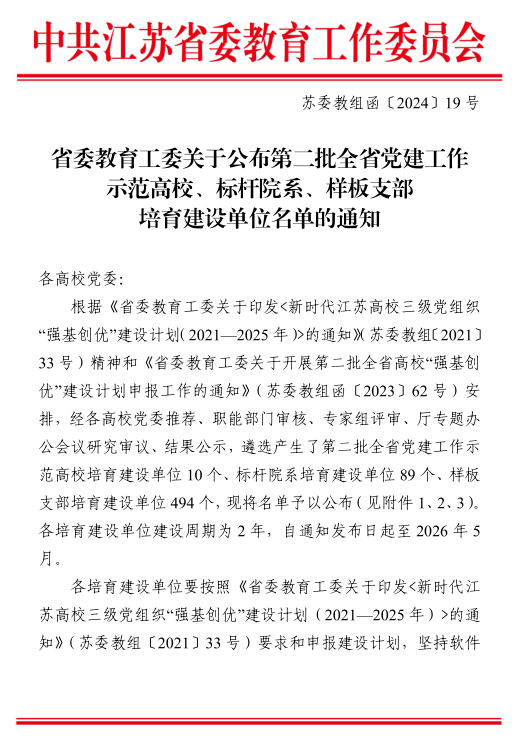 第二批全省黨建工作(zuò)樣板黨支部培育建設單位(wèi)名單