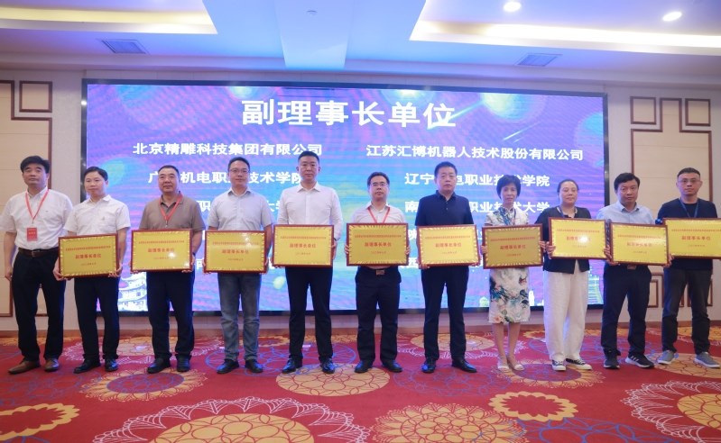會議在7月26日預備(bèi)會議醞釀的基礎上,審(shěn)議並(bìng)通(tōng)過了《共同體章程》及《選舉辦法》,表決並通過了共同體組織機構名(míng)單,學校當選為共同體理事長(zhǎng)單位,學校校長許朝山當選為共同體理事長,電氣工程學院黨總(zǒng)支書記周斌當選為共同體秘書長。共(gòng)有26家(jiā)單位當選(xuǎn)為副理事長單位,54家單位當選(xuǎn)為常務理事單位,80家單(dān)位當選為理事單位。新當選的理(lǐ)事長、副理事長代表共同啟動了全國職業學校教師創新發展(zhǎn)聯盟高端裝備領域共(gòng)同體成立揭牌儀式。學校校長許朝山(shān)、貴州裝備製造職業學院校長金焱分別為共同體副理事長單位授牌(pái)。