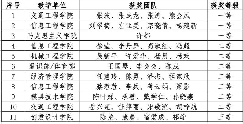 近日,2024年江蘇省職業(yè)院校教學能力(lì)比賽結束(shù)。常州機電(diàn)職業技術(shù)學院11參賽團隊(含中職思政組跨校組隊1個)全部獲獎(jiǎng),包括一等獎3項(xiàng)二等獎7三等獎1獲(huò)獎總數居全第一。