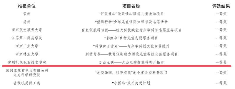 8月30日,由共青團江蘇省委聯合(hé)省委(wěi)社會工作部、省青年誌願者協會舉辦的2024年江蘇省青年誌願服務(wù)項目大賽評(píng)選結果揭曉,常州機電職業技術學(xué)院信息工程學院“萬山互聯——大山裏的智慧科普開拓者”項目榮獲一等獎。