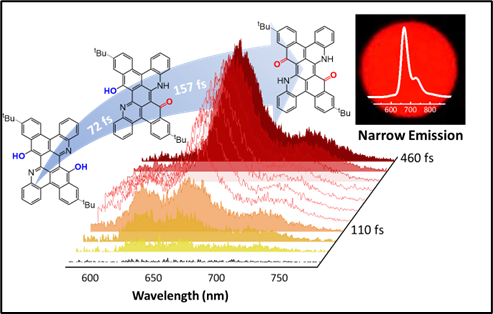 近日,常州大學材料(liào)科學與工程學院朱衛國教授團隊吳秀剛教授等人提出了利用激發態分子(zǐ)內質子轉移(ESIPT)態構築純有機發光(guāng)材料滿(mǎn)足BT.2020標準的新策略。受質子轉(zhuǎn)移影響,ESIPT材料通常具有較大的斯托克位移、較寬的發射光譜,且很難獲得高(gāo)效的紅光發射(shè)。研究者采用巧妙的分子設計策略構築了窄(zhǎi)譜帶、高效率、且(qiě)滿足BT.2020標準(zhǔn)的ESIPT窄帶深紅光材料,並用(yòng)先(xiān)進的瞬(shùn)態(tài)門控光譜技術證(zhèng)明了(le)這一(yī)發光機理,製備了滿足BT.2020標準的有(yǒu)機(jī)發光二極(jí)管。該研究揭開了人們對ESIPT材料的新認識,為設計窄光譜材(cái)料開辟(pì)了新的路徑。