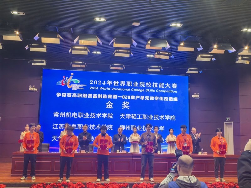 10月28日-10月31日,2024年世界職業(yè)院校技(jì)能大賽高職裝備製造賽道-生產單元數字(zì)化改造項(xiàng)目決賽(sài)在天津輕工職業(yè)技術學院舉辦。本次比賽共有來(lái)自全國各地的60支隊伍參加(jiā)。常州機電(diàn)職業技術學院(yuàn)電氣工程學院(yuàn)學生王簷、曹明坤、徐春鈺(指導老師:周斌、王斌)經過激(jī)烈角逐,斬獲金獎。