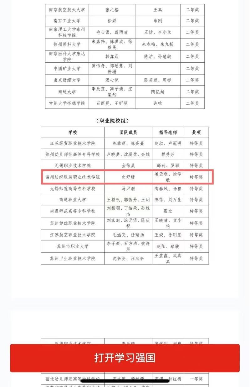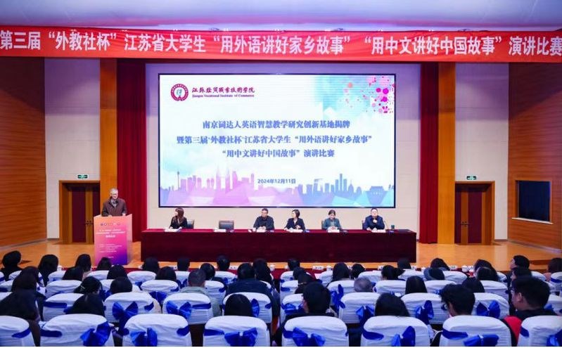 12月(yuè)11日,由江蘇省高等(děng)教(jiāo)育學會指導(dǎo)、江蘇省高等學校外國語教學(xué)研究會、“學習強國”江蘇學習平台、上海外語教育出版社主辦,江蘇經(jīng)貿(mào)職業(yè)技術(shù)學院承辦的第三屆“外教社杯”江蘇省大學生“用外語(yǔ)講好(hǎo)家(jiā)鄉故事”“用中(zhōng)文講好中國故事(shì)”演講比賽決賽順利舉行。常州紡織服裝職業技術學院通識教育學部選送的淩雲欣、徐學敏指(zhǐ)導的幼服專業學生史妤婕的作品獲得(dé)職業(yè)院校組特等獎。