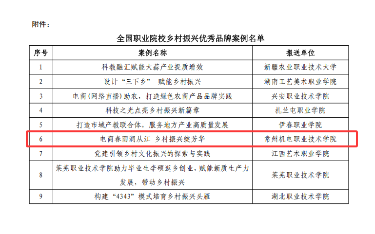 常州機電(diàn)職業技術學院案例入選全(quán)國(guó)職業院校(xiào)鄉村振興(xìng)優秀品牌案例