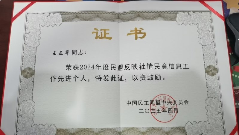 近(jìn)日,民盟中央2025年參政議政工(gōng)作會議在(zài)北京(jīng)召開。會議表彰了2024年度參政議政工作及反映社情民意信息工作先進單位(wèi)與個人。常州工業職業技術學院民盟(méng)支部盟員、研究員王正華獲“2024年度(dù)民盟反映社情民意信息工作先進個人”表彰。這是王正華老師繼榮獲2022、2023年度民盟中央(yāng)“反映社(shè)情民意信息工作先進個人”榮譽以來第3次獲此項表彰。