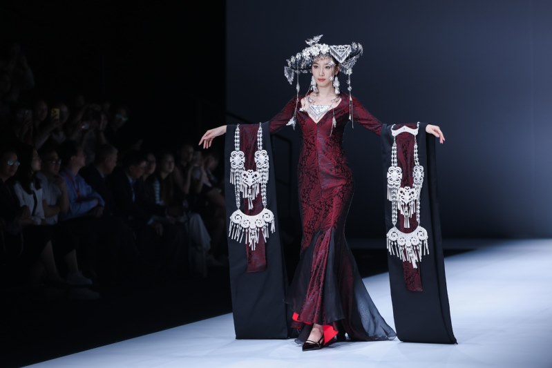 篇章二“華(huá)彩”展現中華(huá)優秀民族服飾文化的絢爛多彩,運用(yòng)苗(miáo)繡、藏紋等民族元素,融入現(xiàn)代設計理念,打造出兼具民(mín)族特色與當代審美的服裝作品,展現民族文化的獨特韻味(wèi)與生命力(lì),表達當(dāng)代青年對民族文化的傳承與創(chuàng)新。