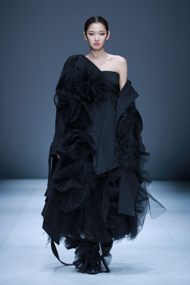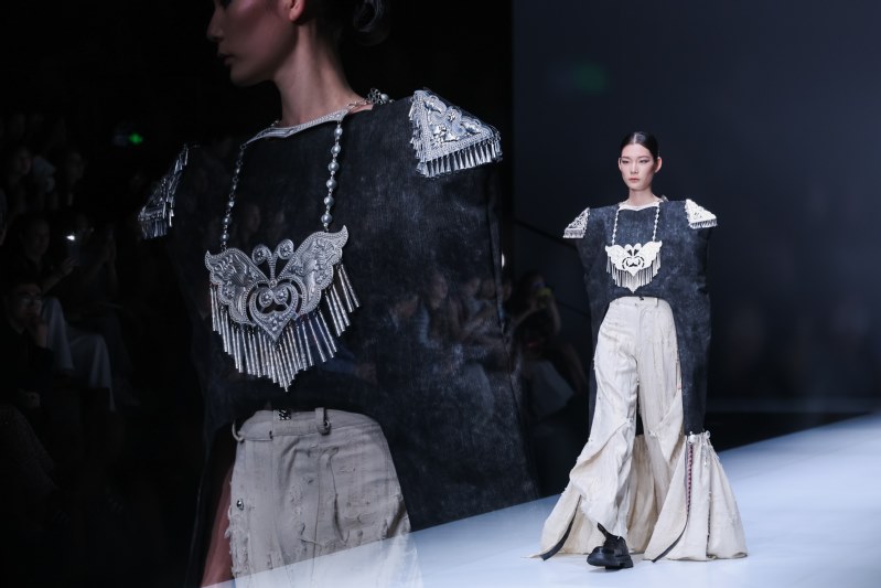 篇章三“煥承”以(yǐ)“煥”點明創新活力,以“承”緊扣(kòu)傳統根基,將地域(yù)文化(huà)和民俗特色融入現代服裝設計理念,自然呈現新舊交融,使傳統元素在現代服裝中煥發生機,以此塑(sù)造富(fù)有活力的東方新形象。
