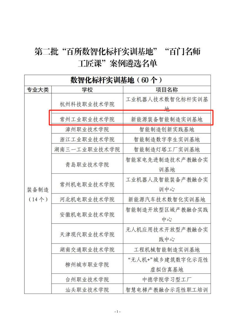 6月16日,中國職業技術教育學會發布《關於“百所數智化標杆實訓基地”“百門名師工匠課”第二批征(zhēng)集案例遴選結果》的公示,常州工業職業技術學院劉進福、蔣正炎領銜的“新能源裝備智能製造實訓基地”成功入選“百所數智化標杆實訓(xùn)基地(dì)”。