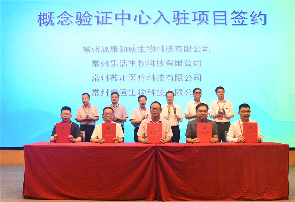 在與會嘉賓的共同見證下,現場正式成(chéng)立了“生物製造產業創新聯盟”,並揭牌啟用“常州市(shì)合成生物公共檢測服務平台”和“常州市合成生物(wù)概念驗(yàn)證中心”,標誌著常州在合(hé)成生物學(xué)基礎(chǔ)設施與產(chǎn)業(yè)協同方麵取得關鍵進展。常州市合(hé)成生物概念(niàn)驗證(zhèng)中心與省內四家(jiā)生(shēng)物科技(jì)企業完成首批入駐(zhù)項目簽約,彰顯(xiǎn)出產學研(yán)深度融合的(de)積極成效。