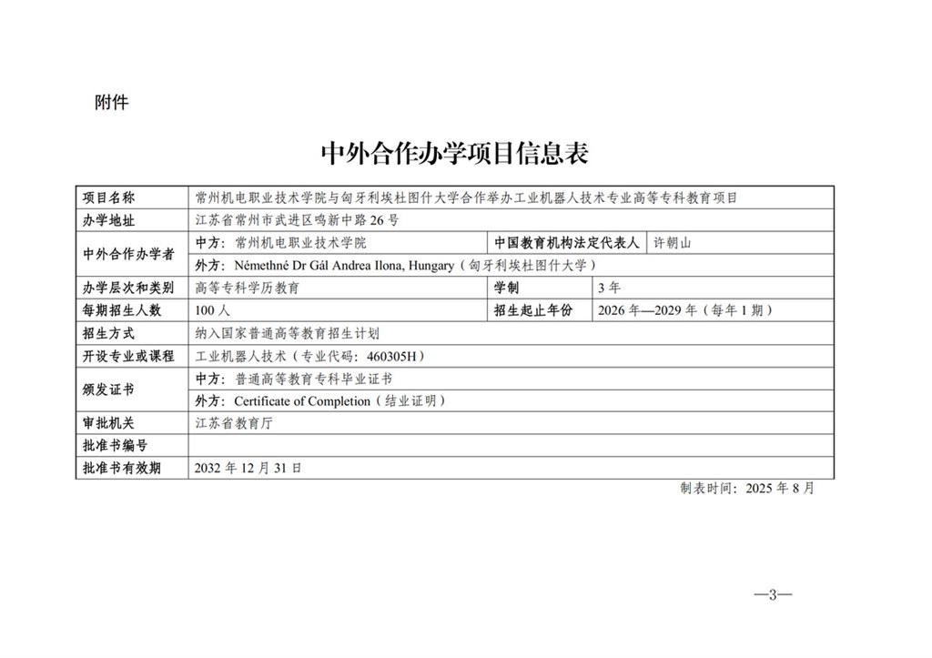 近日,江蘇省教育廳正(zhèng)式批複,同意常州機電職(zhí)業(yè)技術學(xué)院與(yǔ)匈牙利埃杜圖什大學合(hé)作舉辦工業機器(qì)人技術專業高等專科教育項目。這是(shì)繼2023年12月學校(xiào)與俄羅斯陶裏亞蒂國立(lì)大學合作舉辦(bàn)計算機網絡技術(shù)專(zhuān)業高等專科教育項目獲批之後(hòu),成功落地的第二個(gè)中外合作辦學項目。