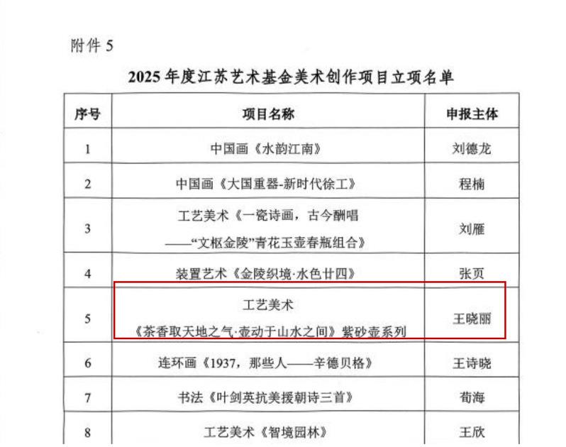 近日,江蘇藝術基金管理中心正式發布《關於2025年度江蘇藝術基金立項項目的通知》,常州工業職業技(jì)術學院藝術創意學院王曉麗教授申報的項目《茶香(xiāng)取天地之氣·壺動於山水之間》喜獲基金立項資助。