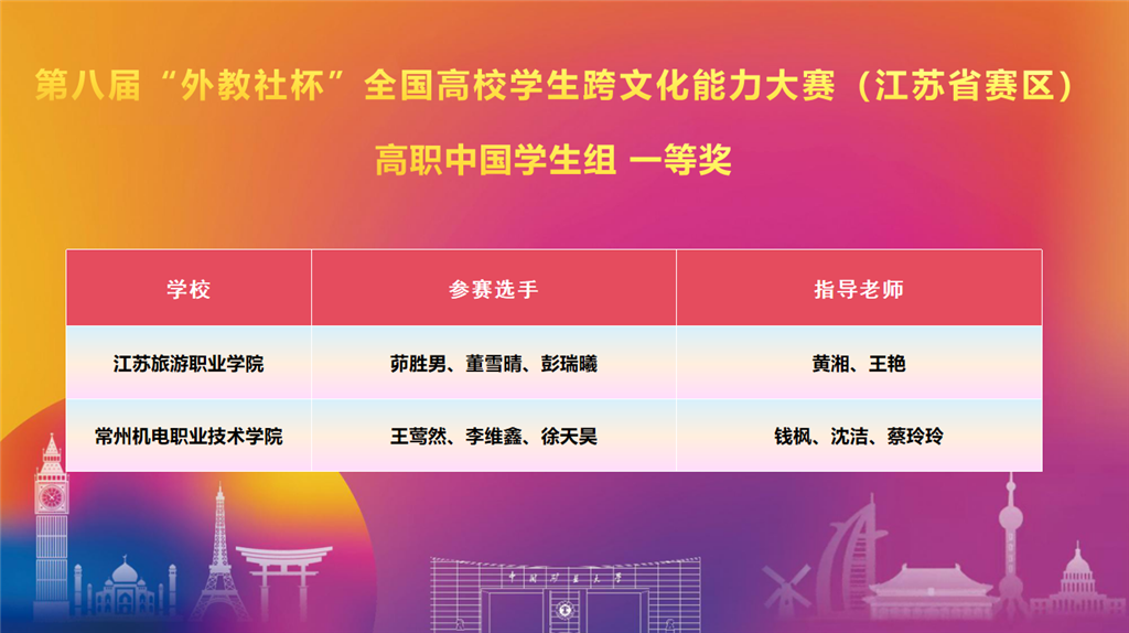 常州機電職業技術(shù)學院榮(róng)獲第八屆“外教社杯”全國高校學生跨文化能力大賽江蘇省賽(sài)區一等獎