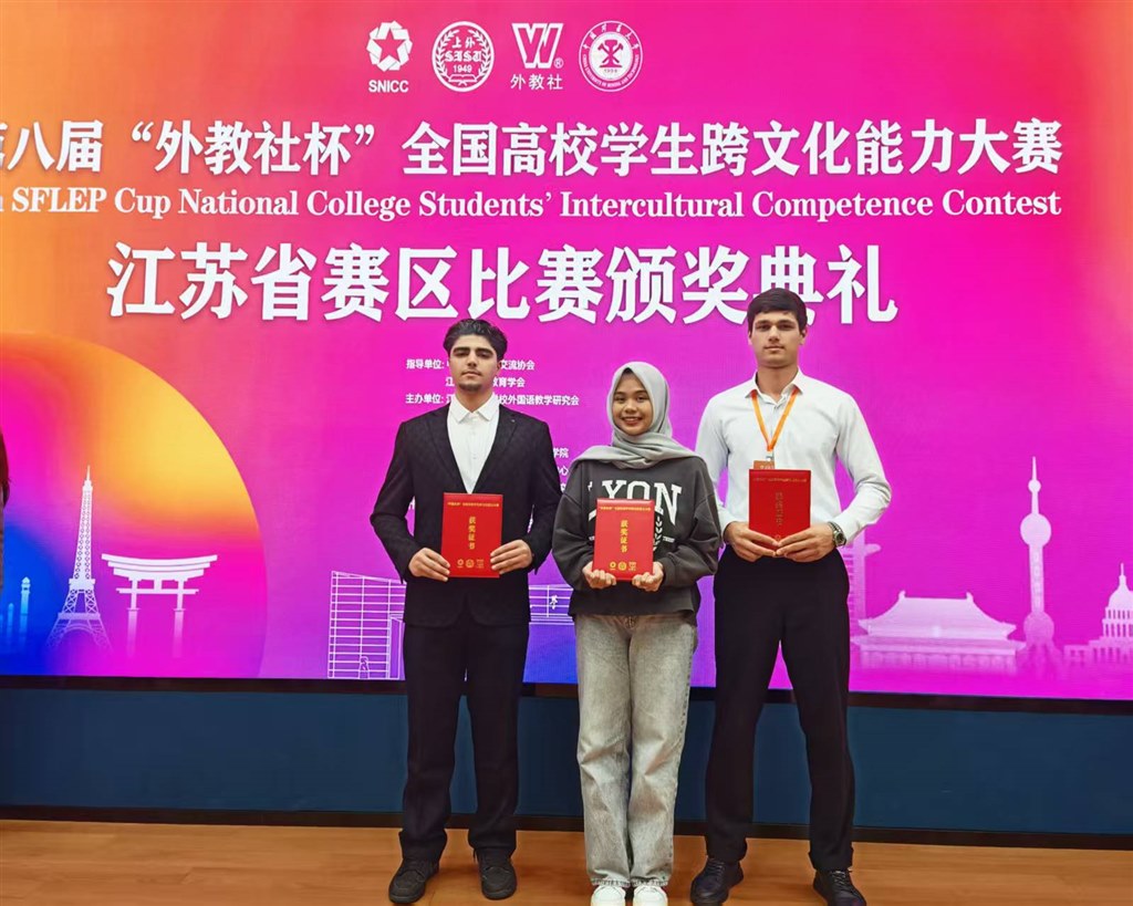 10月24日至26日,第八屆“外教社杯”全國高校學生跨文(wén)化能力(lì)大賽江(jiāng)蘇省賽區選拔賽在(zài)中國礦業大學舉辦。由常州機電職業技術學院通識(shí)教育部教師錢楓、沈潔、蔡玲玲指導,機電2439班徐天昊(hào)、李維鑫及跨商2532班王鶯(yīng)然等同(tóng)學組成(chéng)的參賽團隊,憑借(jiè)紮實的(de)跨文化知識儲備、敏銳的問題分析(xī)能力及自信從容的(de)現場表現,獲高職中國學生組一等(děng)獎。由國際(jì)教育學院教師蔡慧(huì)、高淑紅、王亞芳指導,擎宇、馬洛(luò)夫及馮(féng)娜妲等同學組成的參賽團隊獲得國際學生組二等獎。