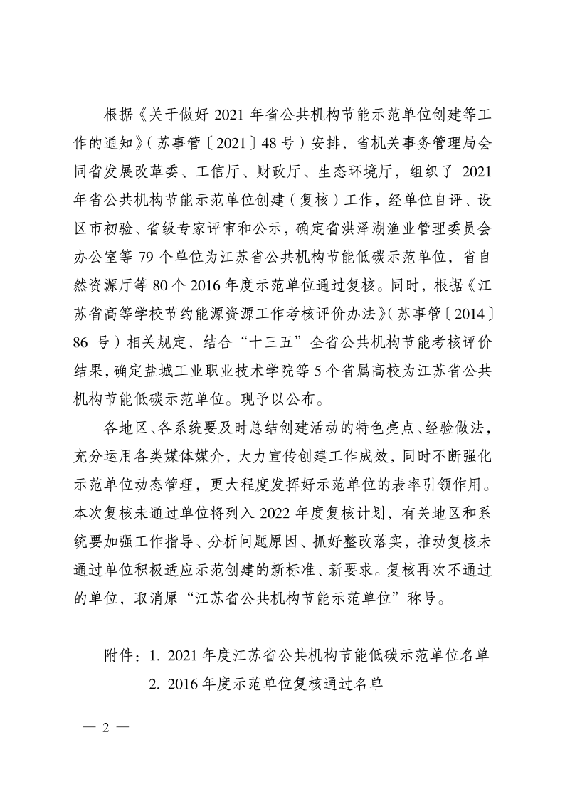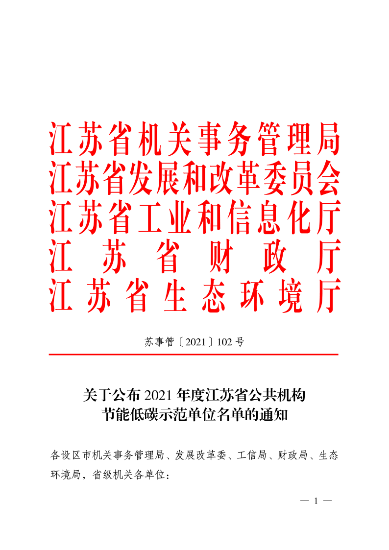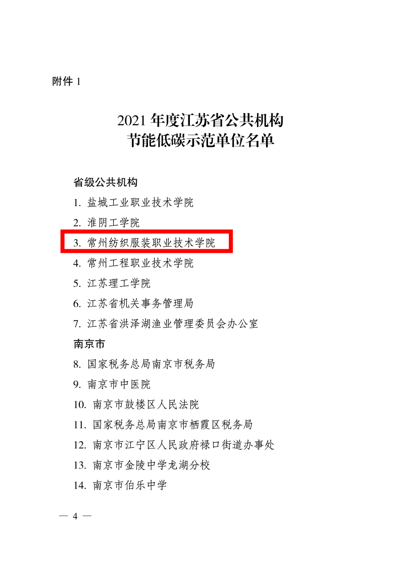 我(wǒ)校被(bèi)評為“江蘇省公共機構節能低(dī)碳示範單(dān)位”,本次評(píng)審由省機關事(shì)務管理局、省發展和改革委員會、省工(gōng)業和信(xìn)息化廳、省財政廳、省生態環境廳五部門組織,僅五所高校獲此殊榮。