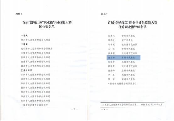 首屆“創響江蘇”職業(yè)指導員技能大賽獲獎(jiǎng)結果於日前揭曉。我校教師金立暢所在的常州市人力資(zī)源和社會保障局代表隊榮獲本屆大賽唯一的團(tuán)體一等獎。金立暢憑借全省個(gè)人排名第六(liù)的好成績,獲得“江蘇(sū)省優秀職業指導師(shī)”稱號。