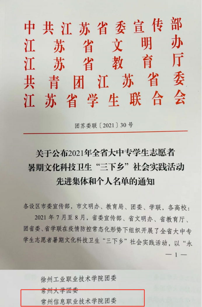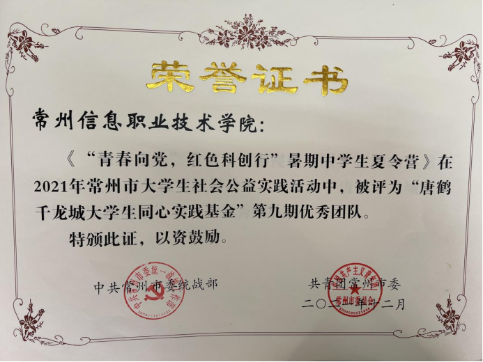 同時,我校“常(cháng)州大(dà)學生網絡用戶個人信息安全現狀調查”團隊獲評“十佳(jiā)團隊”,“‘青春向黨’,紅色科創行,暑期中學生夏令營”“‘振興之(zhī)星’,常信鄉村(cūn)影視助力團”獲評(píng)“優秀團隊”稱號。