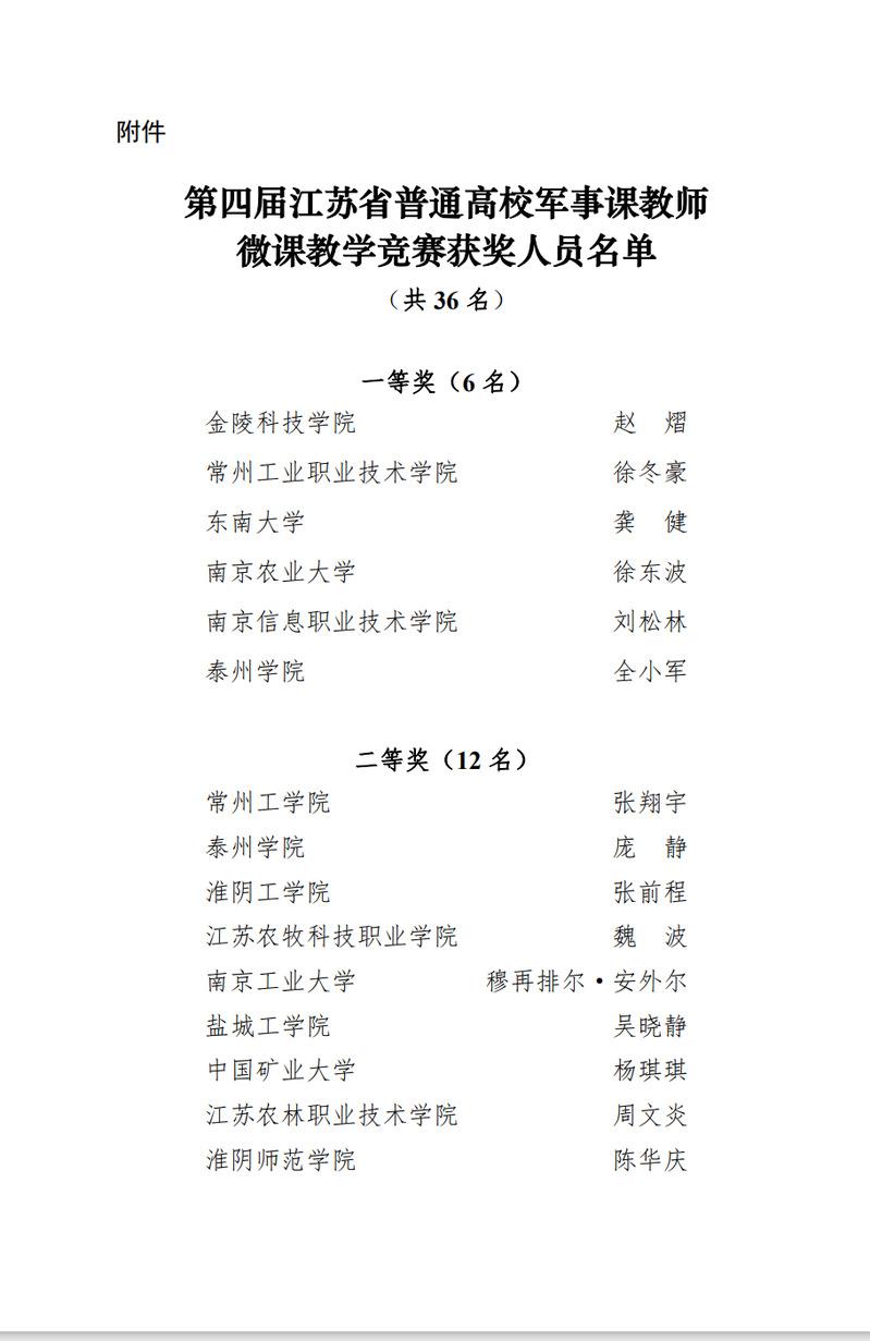 近日,第(dì)四(sì)屆江蘇省普通高校(xiào)軍事課教師微課教學競(jìng)賽決(jué)賽在南京師範大學舉行,我校人武部軍事課教師徐冬豪從全省普通高校近百(bǎi)名軍事課教師中(zhōng)脫穎而出,以決賽第2名的成(chéng)績榮獲一等獎。