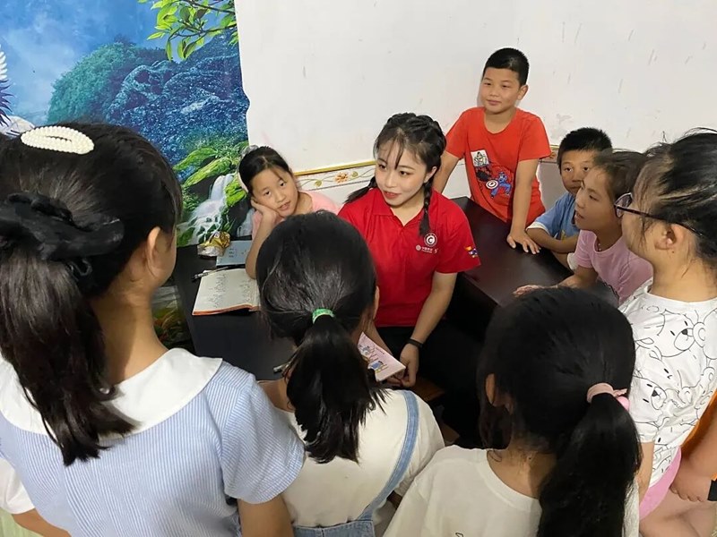 校青年誌願者協(xié)會“梧桐花開”實踐隊為外出務工子女開展“彩繪學黨史”活動