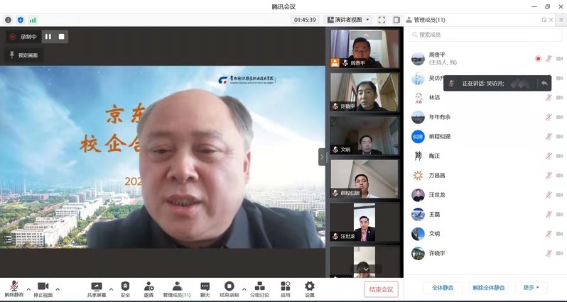 吳訪升介紹了學校整體概況以及(jí)“十四五”期間的辦學使命,他指出在(zài)數字經濟發展(zhǎn)和智改數轉的大背景下,專業的轉型升級需要與行業發展深度融合,希望經貿學院的相關專業能與京東集團開展深度合作,形成華麗轉身,更好(hǎo)地適應(yīng)行業和企業的發展需求。通過合(hé)作,創新產教深度融(róng)合、人才培養的模式和三教改革的方式(shì)方法。