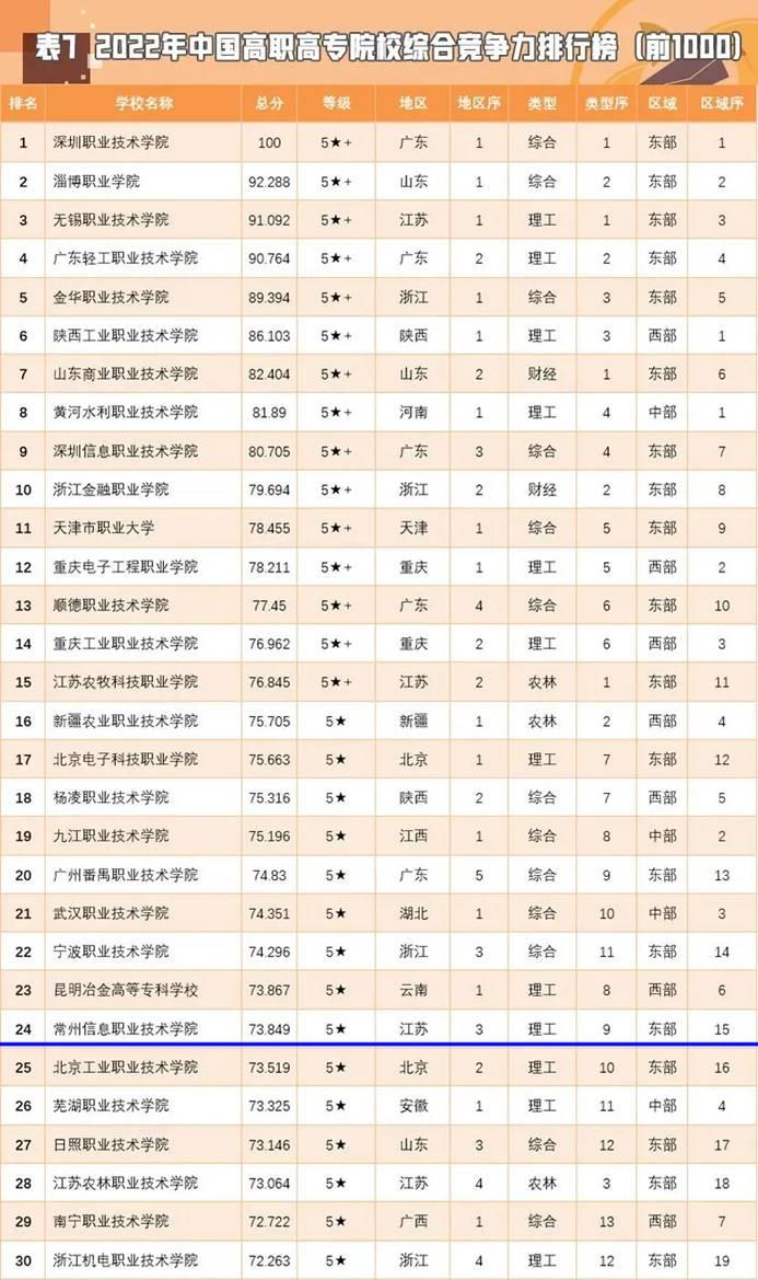 日前,“金平果”(中評榜)2022中國高職院校競爭力排行榜發布,常州信息職業技術學院(yuàn)排(pái)名全國第24,江蘇第3,再創曆史新高。
