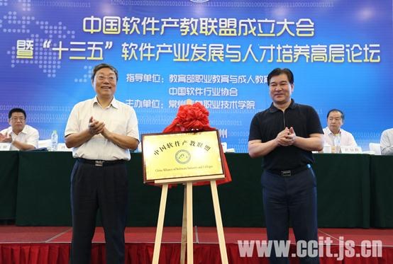 在接下來舉行的聯盟(méng)成立大會上(shàng),首先(xiān)由常(cháng)州信息職業技(jì)術學院黨(dǎng)委書記鄧誌(zhì)良致歡迎辭,隨後(hòu)中國(guó)軟件行業(yè)協會理事長趙小凡與江蘇省教育廳副廳長蘇春海共同為中國軟件產教聯(lián)盟(méng)成立揭牌並致辭。江蘇省經濟和信息化委員會副主任(rèn)龔懷(huái)進,中共常州市(shì)常委、科教城黨工委書記徐光輝,天津電子信(xìn)息職業技術學院院長吳家禮,中軟國際(jì)有限公司校企合作總監(jiān)郭薇出席大會(huì)並致辭。大會由我院院長王丹中主持。