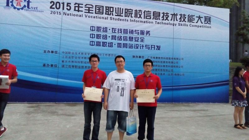 718日,學院網絡營銷1411班王鑫斌、譚帝寧兩位學子在2015年全國職業院(yuàn)校信息技術技能大賽中,分別獲得“高職組·微網站(zhàn)設計與開發”賽項一等獎(jiǎng)和(hé)三等獎。