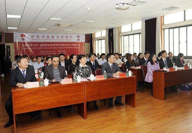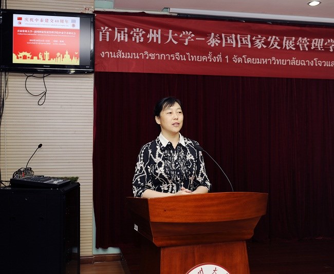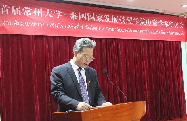 10月22日,由常州大學、泰國國家發展(zhǎn)管理學院聯合主辦的首屆中泰學(xué)術研討會在常州大學舉行。泰國國家發展管理學院、泰國大城皇家大學(xué)、泰國清萊皇家大(dà)學、泰(tài)國清邁蒙福學校和中國北京大學、雲南大學和常州大學的近40位專家學者齊聚一堂,就(jiù)中泰友好合作40年、“一帶(dài)一路”發展理(lǐ)念下中泰雙邊合作前景、中泰創新創業、中泰教育文化合作交流等議題深入研討。泰國國家發展管理學院副院長金達娜、泰國大城皇家大學副(fù)校長塔德(dé)利、泰國清(qīng)萊皇家大學人文學院副院長番秀英、泰國清邁蒙(méng)福學校副校長葛甘(gān)達、常州社科聯副主席葉英姿,常州大學黨委書記(jì)史國棟、校長浦玉忠等出席研討會。宣傳部(bù)、人文社科處、商學院、國際交流處、國際教育交流學院相關負責人參加了研討(tǎo)會。泰國駐上海總領館總領事巴麗彩為研討會(huì)發來賀信。