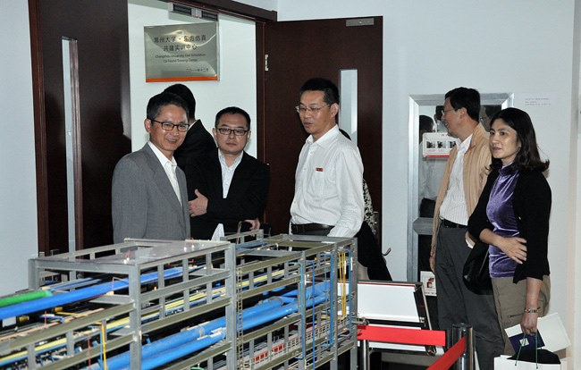 簽約前,陳明一行(háng)參觀了(le)我校生物醫學工程與健康科學研究院、華羅庚學院(yuàn)、大學生科技與藝術創新中心以(yǐ)及國家級虛擬仿真實驗中心。(編(biān)輯 鬱濤)