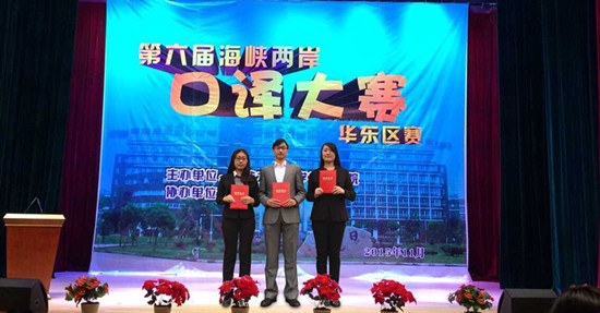 1114日,第六屆“海(hǎi)峽兩岸口譯大賽”華東區賽在寧波大學科學技術學院舉(jǔ)行。我(wǒ)校周有光語(yǔ)言文化學(xué)院徐奇、秦貝茜、高林三位(wèi)同(tóng)學在伊詠老師的指導下,與來(lái)自大陸43所高(gāo)校的144名(míng)口譯高手同台競(jìng)技,最終獲得優(yōu)勝獎。