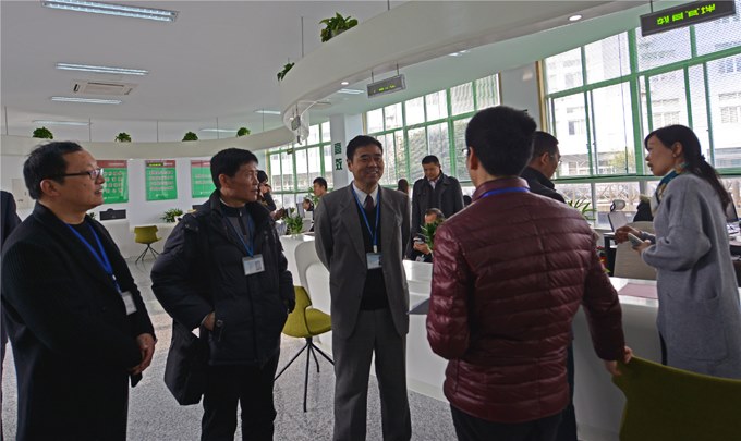 張雪華介紹(shào)了大學生事務中心建設理念和提供的功能。富有流線型的事務大廳、充滿創意的藝術牆、精致優美的學生作品,彰顯著青春的朝氣;一站式的服務窗口、溫馨大氣的休閑區,體現著學院“以生為本、愛生如子”的人文關懷(huái)。事務中心圍繞學生教育管理、幫困助學、就(jiù)業指導、後勤保障等工作(zuò)內容,以(yǐ)“方便學生辦事,解決學生困難,促進學生成(chéng)長”為宗(zōng)旨,通過“一站(zhàn)式”服務,構建起一個集教育、管理、服(fú)務於(yú)一體的新的學生事(shì)務專(zhuān)業化工作平台。