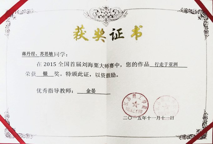 近日(rì),由江蘇理工學院劉海(hǎi)粟藝術學院、劉海粟研究(jiū)院發起,中國水墨畫學會、常州市美術家協會等聯(lián)合舉辦的2015首屆全國“劉(liú)海粟大師賽”落下帷幕。學院學子在該項比賽中獲得(dé)金獎、銀(yín)獎、銅獎各一項。