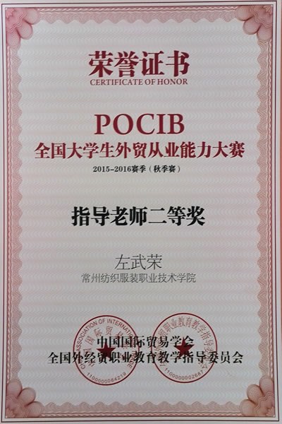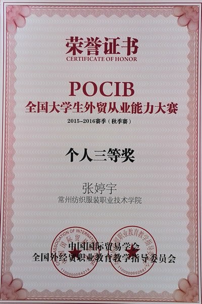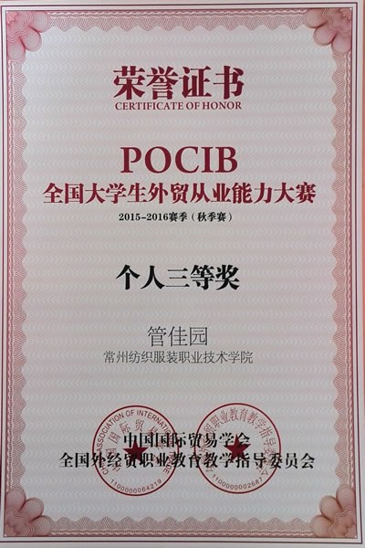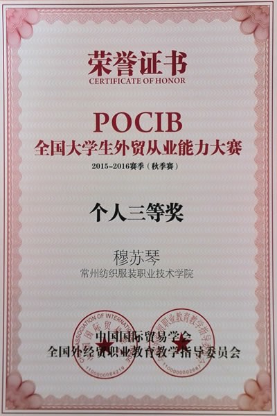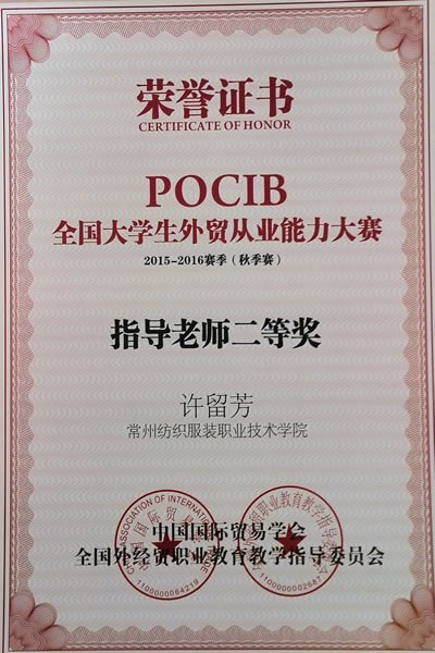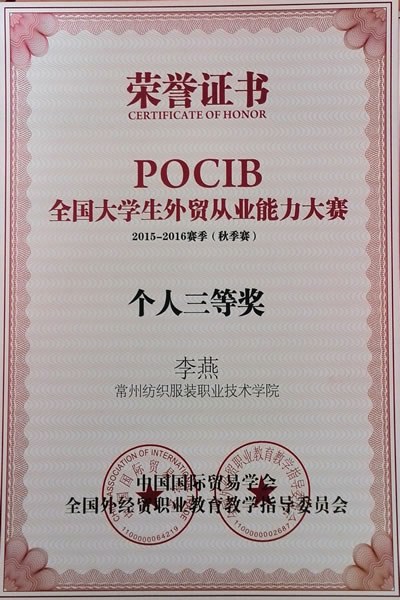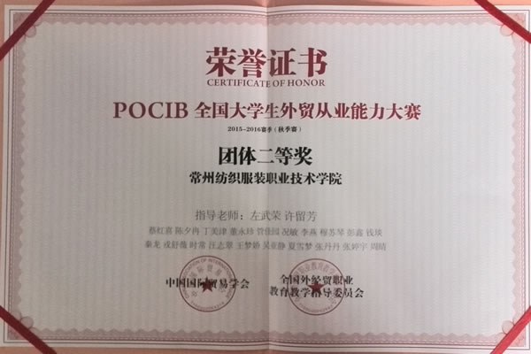 常州(zhōu)紡織(zhī)學院:第五屆POCIB全國大學生外貿從業能力(lì)大賽我院獲獎(jiǎng)