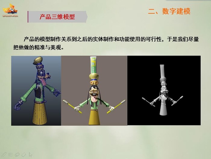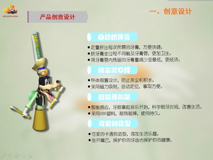 我院藝術設計係“漫(màn)人堂—葫蘆娃來戰小哪吒團隊”選手葛凱、董旭然的獲獎作品“多功能牙刷架(jià)產品設計製作與動畫展示”,是在王棟臣、韓明老師的精心指導下,曆時9個月,利用課餘時間進行市場調研、設計草圖、設計方案,製作三維模型、文字台本(běn)、角色、場景設計、分鏡(jìng)頭繪製、三維動畫製作等各環節的有序推進,以江蘇賽區特等獎的好成(chéng)績進入本次(cì)全國總決賽。決賽現場,我院是江蘇省參賽院(yuàn)校在數字表現方(fāng)向的唯一勝出者,選手作品與現場(chǎng)表現高度吻合本屆大賽“互聯網+中國製造2025—眾創、眾包、眾扶、眾籌”的主題,充分展現出我院第二課堂的建設成果、學生跨專業學習(xí)能(néng)力及創新、創造能力,受到了評(píng)委專家與(yǔ)大眾的高度讚譽。