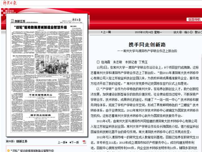 2011年4月,由常州大(dà)家與(yǔ)溧陽市共同組建的溧陽常大技術轉移中心有限公司入駐江蘇駿益科技創業園。常(cháng)州大學產學研合作處(chù)處長(zhǎng)陶國良介紹,借力駿益科創園省級科(kē)技(jì)孵化器平台的(de)牽引作用,常大(dà)溧(lì)陽技術轉移中心的工作亮點紛呈: