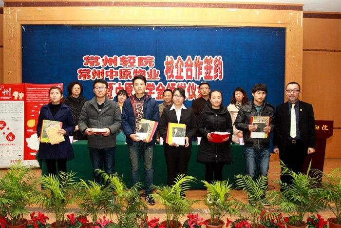 常州中原物(wù)業服務有限公司沈鴻總經理介紹了公司概況及設立“中(zhōng)原”獎學金的宗旨,並在現場與(yǔ)楊海清主任簽(qiān)訂了校企合作協議。事業部(bù)陳東(dōng)兵經理宣讀了(le)獲得2015年度“中原”獎學金的學生名單,公司領導為(wéi)獲獎學生頒(bān)獎。