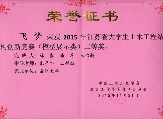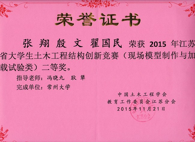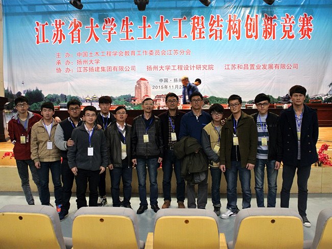 近日,由中國土(tǔ)木工程學會教(jiāo)育工作委員會江蘇分會主辦、揚(yáng)州大學承辦的2015年江蘇省大學生土木工程結構創新競賽在揚州大學揚子津(jīn)校區舉行,來(lái)自(zì)東南大學、河海大學、中國礦業大學、常州大學等高校的31支代表隊參加了本次競賽。由我校土木工(gōng)程係朱(zhū)平華教授、馮曉九教授、夏群副教授、王新傑老師、伍君勇老師、耿強老師指導的3支學生創新團隊在本次賽事中喜獲二等獎3項,為我校參賽曆史上最(zuì)好成績。