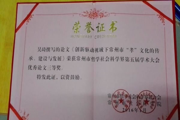 18日,常州市社科界第五屆哲學社會科學界學術大(dà)會在劉國鈞高等職業技術學校舉行。來自全市各高校、社科團(tuán)體、機關以及有關單位的200名社科理論研究(jiū)人員參(cān)加會議。  大會進行了優秀論文表彰,我院(yuàn)宣傳部華建(jiàn)銘老師的(de)論文《曆史文(wén)化名城建設(shè)視野下的清初鄉邦文獻體(tǐ)係重構》榮獲大會優秀論文二等獎,人(rén)文(wén)社科係吳琦老(lǎo)師的論文(wén)《創新驅(qū)動視域下常州市“孝”文化的傳(chuán)承、建設(shè)與發展》榮獲優秀論文三等獎。據悉,本屆學術大會共收到在常高校(xiào)、機關(guān)以及學(xué)會等單位提交論文191篇,與往(wǎng)屆相比有大幅度增長;大會共評出一等獎論文10篇,二等獎論文20篇,三等獎論文43篇。