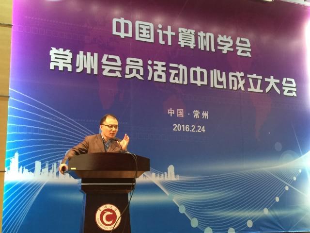 2月24日,中國計算機學會常州會員活動中心(簡稱CCF常州(zhōu)分(fèn)部)成立大會在我校(xiào)文彰樓報告廳舉行。CCF秘書長杜子德(dé)研究員、CCF會員部部長戴麗霞女(nǚ)士(shì),以及常州市CCF會員代表100餘人(rén)參加了(le)成立大會。CCF南京分部主席黃誌球教授,無錫分(fèn)部主席朱平教授、副主席吳小(xiǎo)俊教授、秘書長盧惠林教(jiāo)授,蘇州分部前副主席姚建民研究員(yuán)、委員(yuán)周國棟教授,上海分部秘書長韓偉力副教(jiāo)授、執委(wěi)丁炎、委員陳誌華副教授,CCF寧波秘書長徐建昌,CCF杭州委員陳觀林副教授到場祝賀。常州大學黨委書記史國棟教授、副校長陳群教授出席大會。