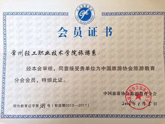 常州輕工學院(yuàn):我院旅遊係成為中國旅遊協會教育分(fèn)會會員單位(wèi)
