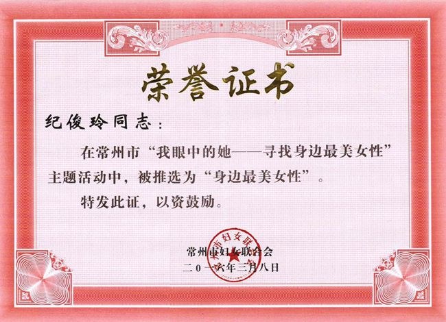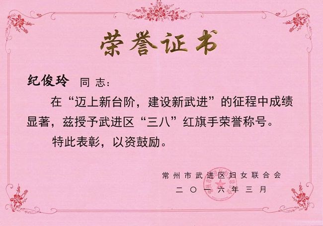 同時,紀俊(jun4)玲老師在常州市武進區舉辦的“三八”國際勞動婦女節106周年暨“美麗女性”表彰大會上,獲得(dé)了“武進(jìn)區三八紅旗手”榮譽稱號。(編輯 鬱濤)
