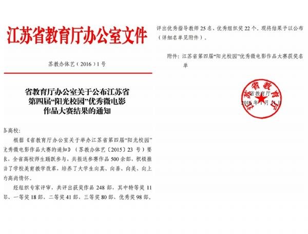 常州(zhōu)信(xìn)息學院:我院師(shī)生第四屆“陽光(guāng)校園”優(yōu)秀微電影作品(pǐn)大賽獲佳績