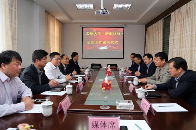 江蘇新泰材(cái)料科技股份有限公司是一家(jiā)致力於鋰電池材料以及化工新材料的研究、生產和銷售為一體的上市企業,其產能位居國內第二。公司擁有很(hěn)強的市場(chǎng)開拓能力和靈(líng)活的經營運行機製,生產、研究與測試設備先進,技術力量雄厚,在新材料、電動汽車組件,特別是鋰電池材料的研究領域具有較高(gāo)的知名度。常州大學在新(xīn)能源材料製備與應用領域優(yōu)勢明顯,試驗儀器設(shè)備齊全,研究團隊具有較強的科研與開發能力(lì)。雙方一致認為要秉承“資源共享、合作共贏”的產學研合作(zuò)理(lǐ)念,共同打造校企強(qiáng)強聯(lián)合體(tǐ)新模式,共同推進我國電池材料及組件材料的快速發展,為(wéi)國家新能源事業發展作貢獻。