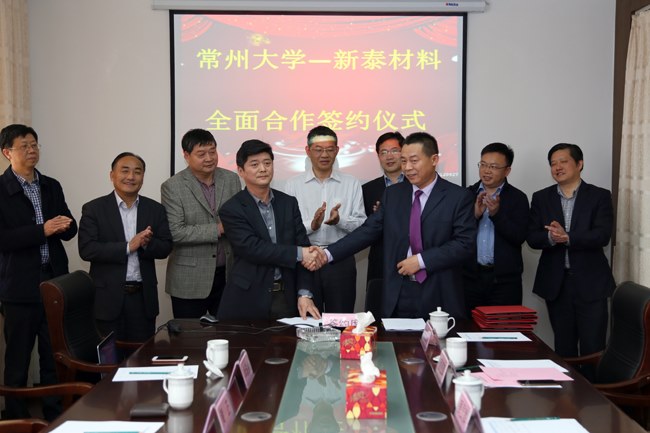 近(jìn)日,常州大學與江蘇新泰材料科技股(gǔ)份有限公司就新能源領域用新材料的研究與產業化、人才培(péi)養與平台建設達成全(quán)麵合作協議。常熟市(shì)副市長周靈群、常州大學校長浦玉忠出席並見證(zhèng)雙方協議簽字儀式。