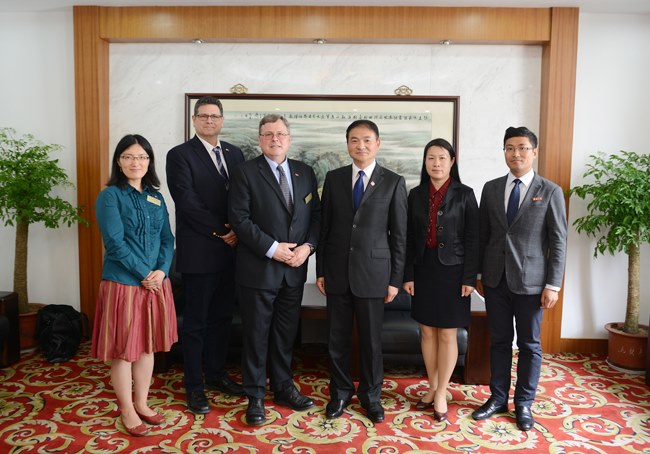 4月15日上午,美國紐約州立(lì)大(dà)學布(bù)魯克波(bō)特分校(xiào)副校長Ralph Trecartin、教育與社會服務學(xué)院院(yuàn)長 Tom Hernandez和張婕(jié)副教授一行訪問我校。常州大學副(fù)校長陳群會見了來賓,國際處負責人參(cān)加了會見。