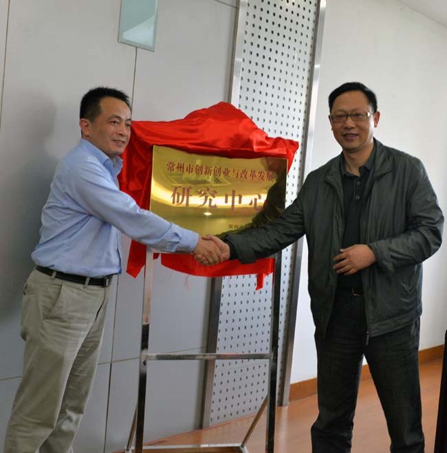 浦玉忠為(wéi)研究中心特聘專家頒發了證書,呂衛明和芮國強共同為常州(zhōu)市創新創(chuàng)業與改革發展研究(jiū)中心揭牌。(編輯 鬱濤)